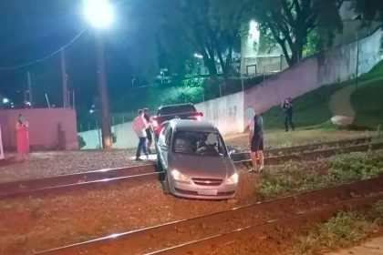 Carro fica preso em trilhos de trem em Apucarana
