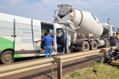Cinco feridos em colisão entre van e caminhão na PR-444, em Arapongas