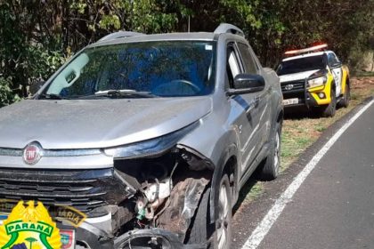 Corsa colide com Fiat Toro e motorista foge do local em Marilândia do Sul