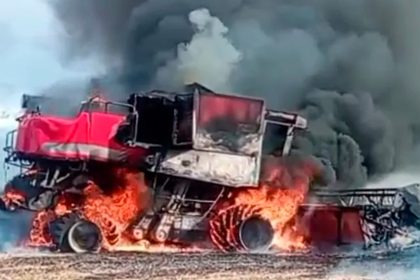 Uma colheitadeira foi completamente destruída por um incêndio registrado no distrito de…