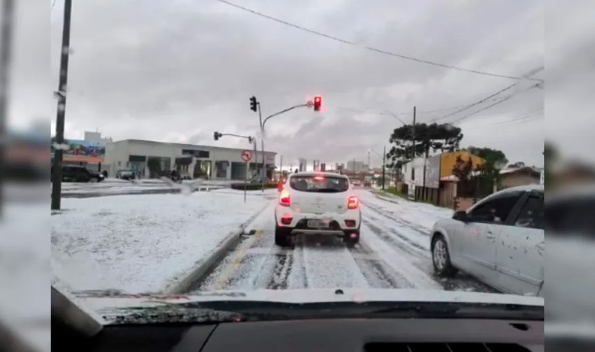 Moradores de bairros como Oficinas, Uvaranas, Jardim Carvalho e Neves registraram uma forte chuva de granizo que atingiu Ponta Grossa na segunda-feira (24). Segundo o Corpo de Bombeiros, as pedras de gelo danificaram telhados, causaram alagamentos e chegaram a cobrir ruas e calçadas, que ficaram totalmente brancas.