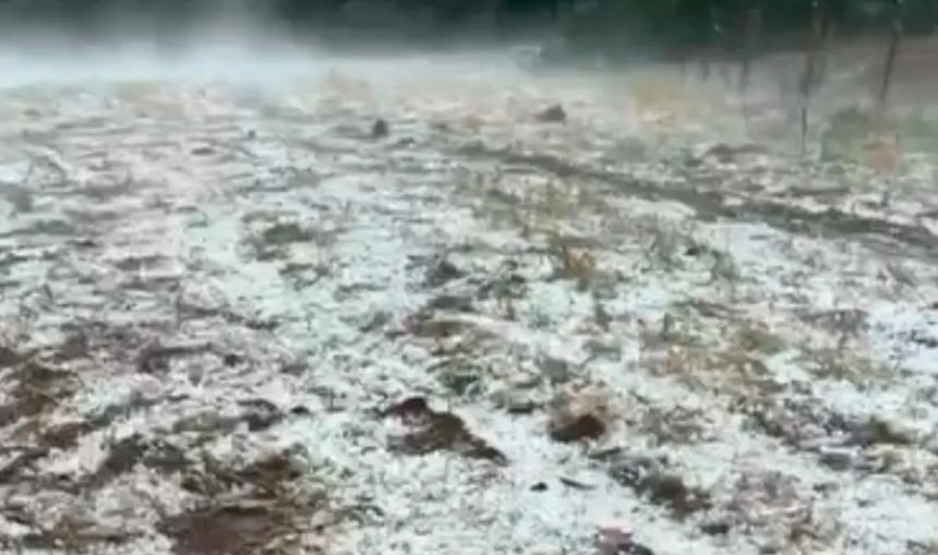 Moradores registraram vídeos que mostram uma intensa camada de gelo cobrindo o solo. Ainda não há informações oficiais sobre o total de prejuízos causados pela tempestade.