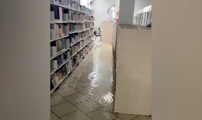 A forte chuva registrada na madrugada desta segunda-feira (3) provocou inundações na biblioteca do campus da Universidade Estadual do Paraná (Unespar), em Apucarana, causando grandes transtornos e danos ao acervo de livros e materiais acadêmicos.