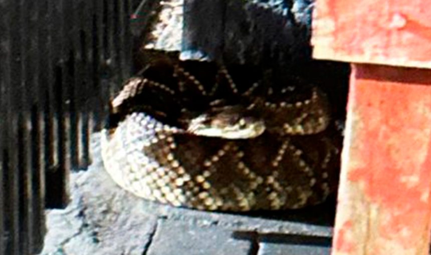 Uma cobra cascavel foi capturada na noite do dia 4 no portão de uma residência localizada na Rua João Batista Gariani, no Jardim Morumbi, em Mandaguari.