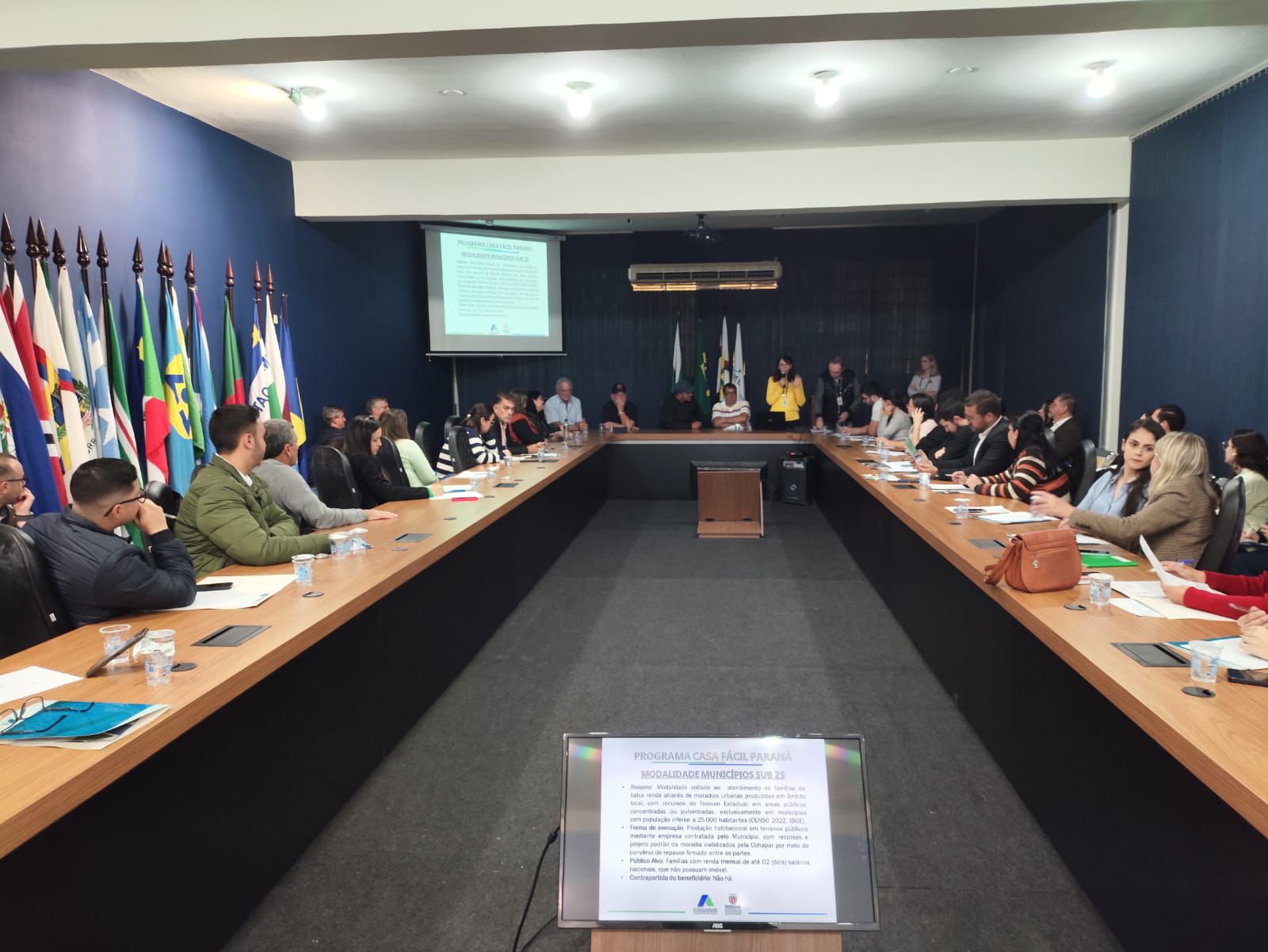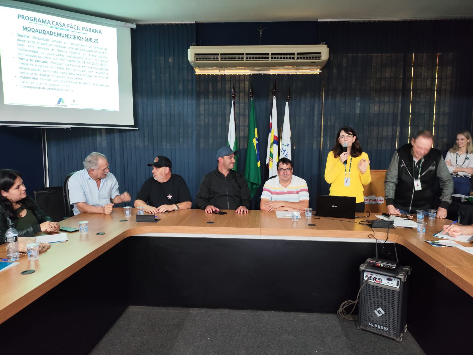 Nesta sexta-feira (25), a Companhia de Habitação do Paraná (Cohapar) apresentou, na sede da Amuvi em Apucarana, as modalidades Terceira Idade e Municípios Sub 25 do Programa Casa Fácil Paraná, que visa facilitar o acesso à casa própria para famílias de baixa renda, com foco em idosos e municípios com menos de 25 mil habitantes.