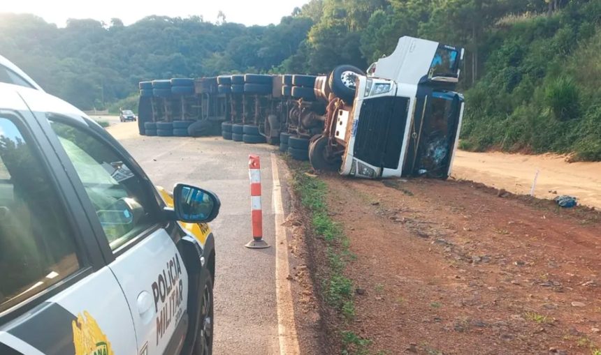 Com o impacto, o conjunto Volvo tombou às margens da rodovia, incluindo os dois semirreboques. O motorista, de 31 anos, não sofreu ferimentos.