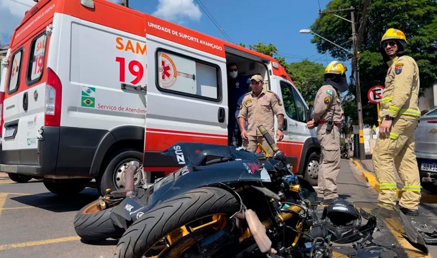 Um acidente envolvendo uma motocicleta Suzuki de alta cilindrada e um Chevrolet Prisma mobilizou equipes de socorro na manhã do dia 17, na região central de Apucarana. A colisão ocorreu por volta das 10 horas, no cruzamento das ruas Munhoz da Rocha e Osório Ribas.