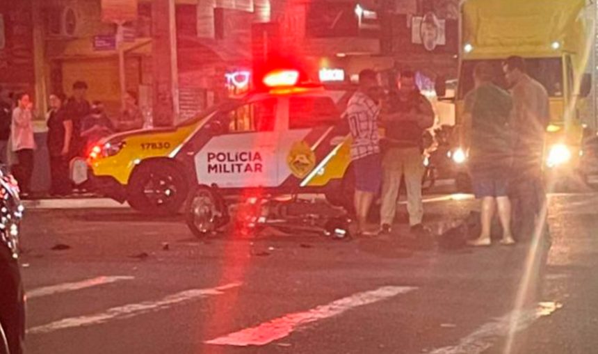 Um acidente de trânsito registrado na noite do dia 1º mobilizou equipes de atendimento no centro de Jandaia do Sul. A colisão frontal envolveu um carro e uma motoneta no cruzamento da Rua Senador Souza Naves com a Avenida Doutor Getúlio Vargas.