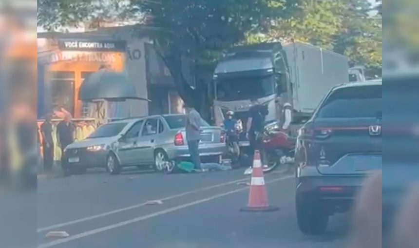 Dois homens ficaram feridos após um acidente envolvendo uma motocicleta e um carro na Avenida Minas Gerais, próximo ao cruzamento com a Rua Campo Largo, em Apucarana, nesta segunda-feira (24).