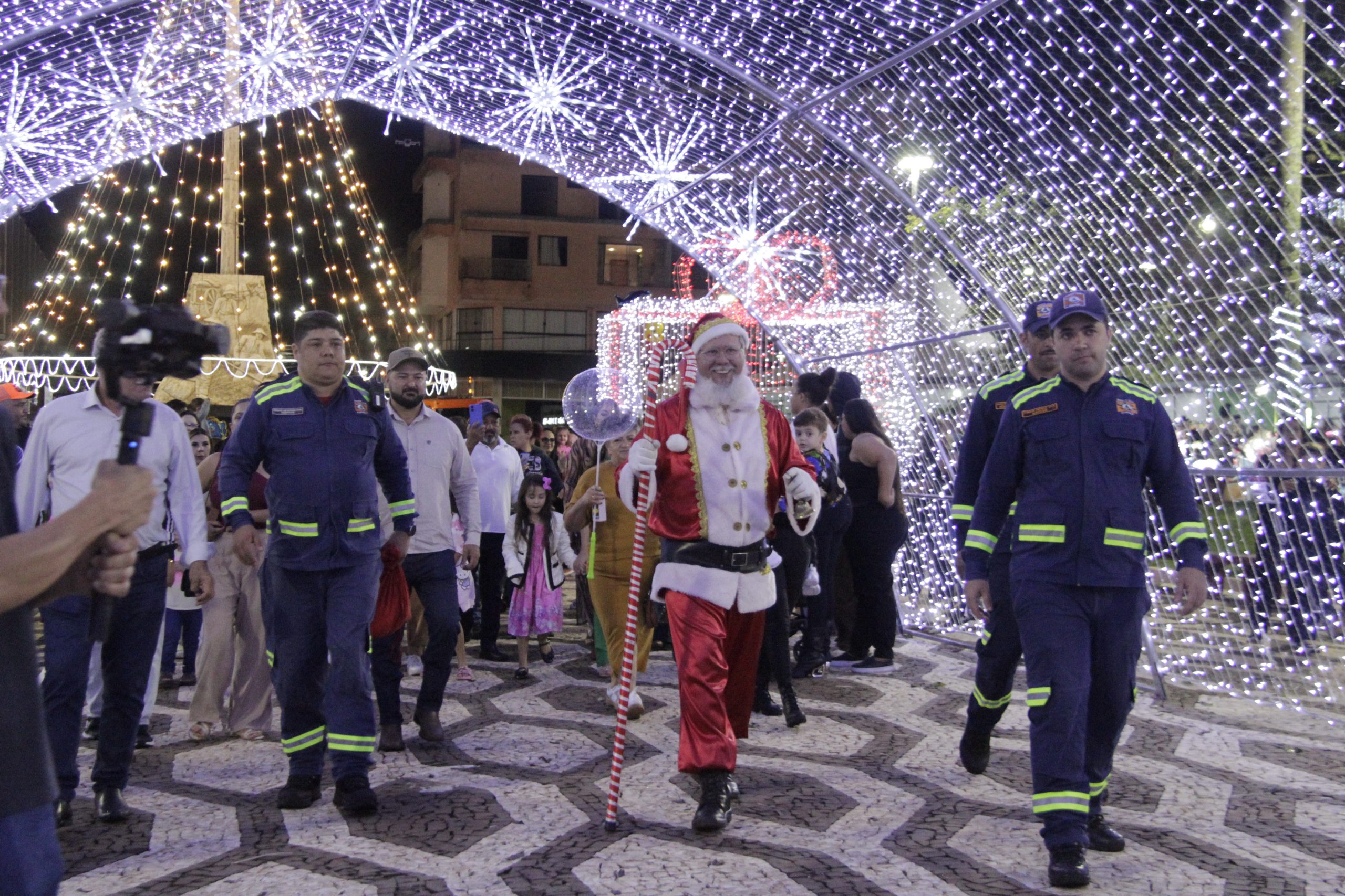 Na sequência, a chegada do Papai Noel, na Praça do Café, encantou crianças e famílias, reforçando o clima natalino e trazendo alegria ao público presente. O momento contou com grande participação popular, mesmo após os dias de instabilidade climática registrados no município.