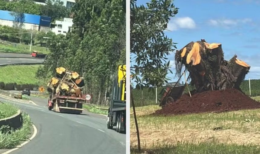 A árvore caiu sobre veículos estacionados na Rua Nova Ucrânia, em Apucarana, após problemas na raiz. Desde então, a empresária decidiu assumir a responsabilidade pelo replantio e levou o tronco até a chácara da família, onde iniciou o processo de recuperação.