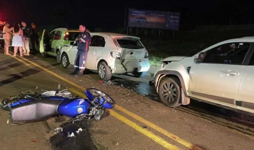 Um engavetamento envolvendo três carros e uma motocicleta deixou um homem ferido no início da noite desta terça-feira (15), em Apucarana. O acidente ocorreu no km 208 da BR-369, no trecho de acesso ao Núcleo João Paulo.