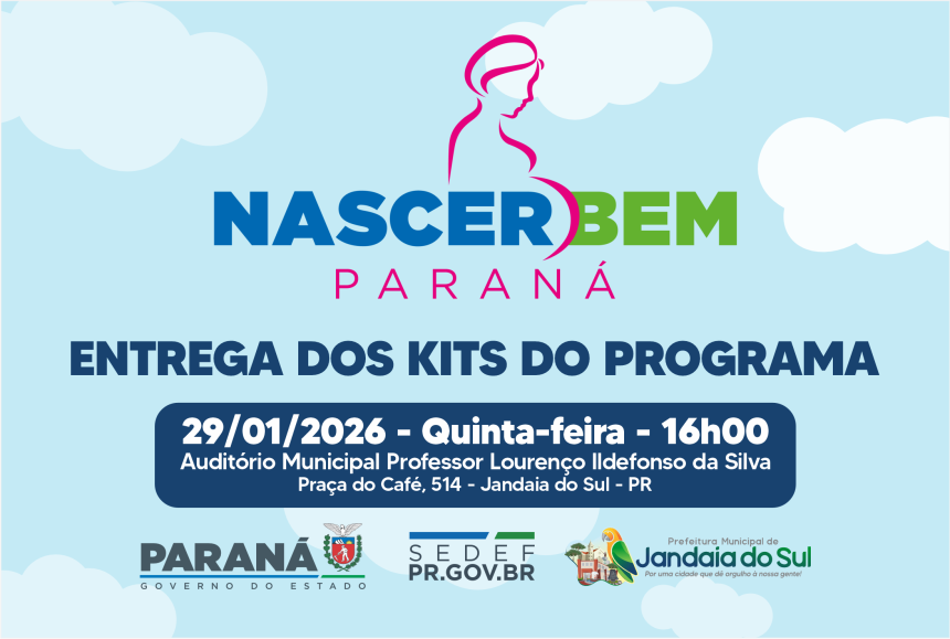 Jandaia do Sul será sede, no dia 29 de janeiro, da entrega dos Kits Bebê do Programa Nossa Infância / Nascer Bem Paraná, iniciativa do Governo do Estado do Paraná, por meio da Secretaria de Estado do Desenvolvimento Social e Família (SEDEF), em parceria com os municípios.