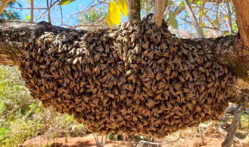 Um enxame de abelhas provocou a interrupção do tráfego na Avenida Brasil, região central de Faxinal, na manhã de domingo (21). A Polícia Militar foi acionada devido ao risco oferecido a pedestres e motoristas.