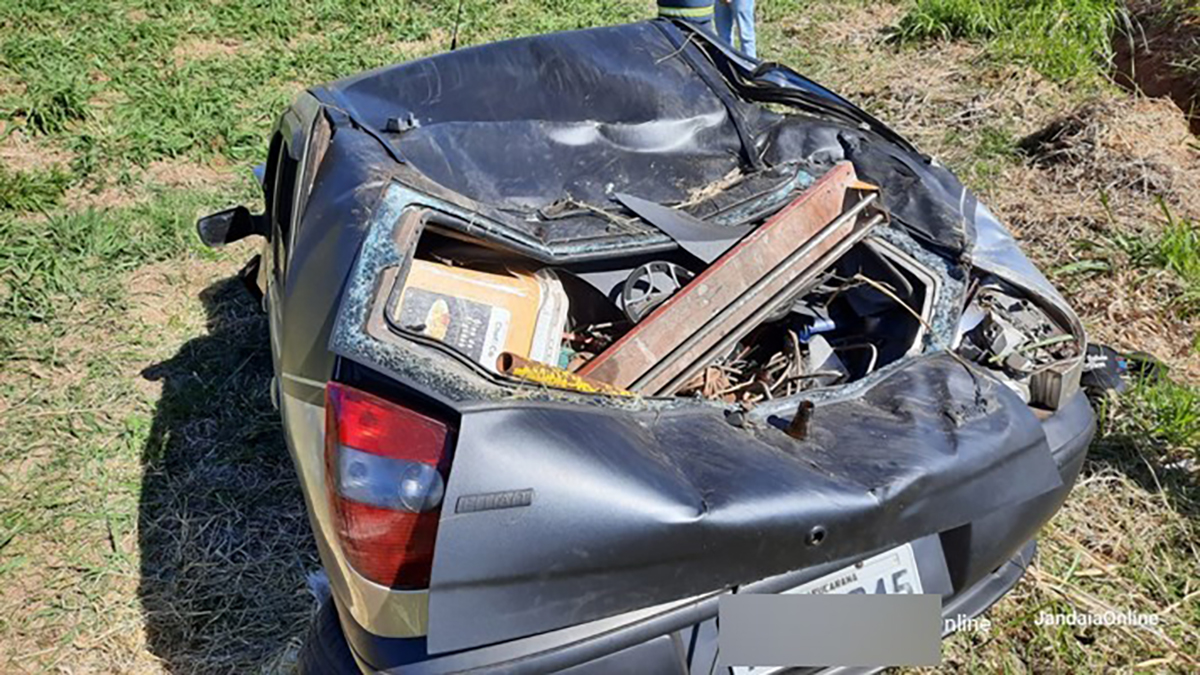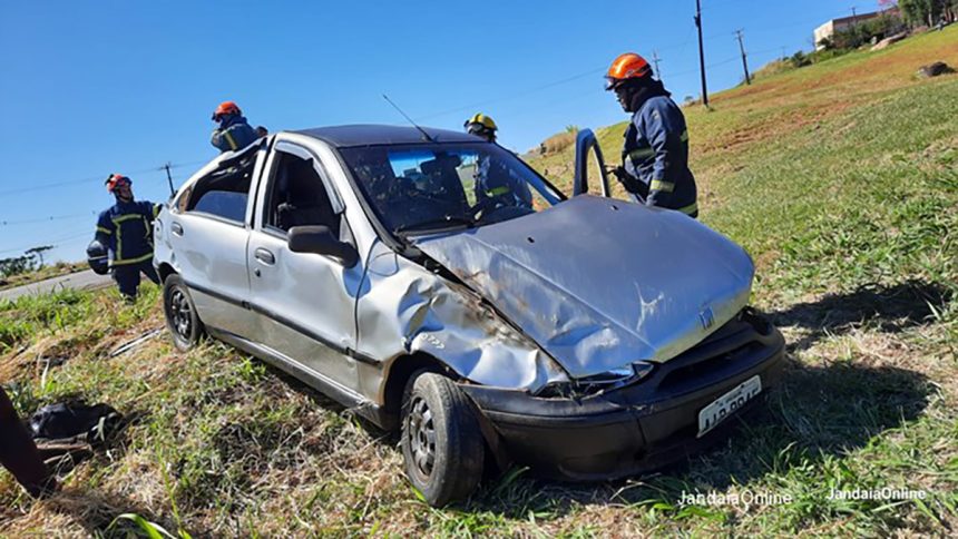 Um Fiat Palio, com placas de Apucarana, capotou no início da tarde deste sábado (9) na BR-376, entre o Jardim das Flores e o Jardim das Araucárias, em Jandaia do Sul.