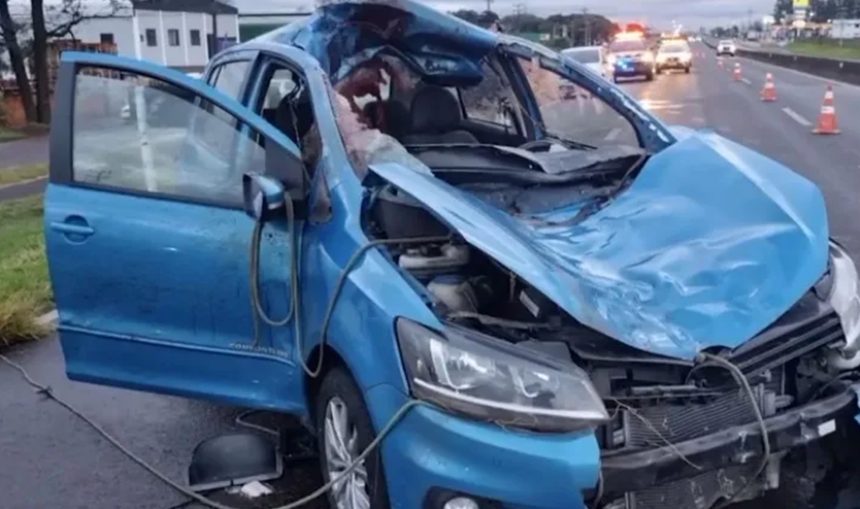 Segundo informações apuradas, o carro seguia sentido Foz do Iguaçu quando colidiu violentamente contra o animal. O impacto foi tão forte que o para-brisa ficou completamente destruído e partes do corpo do cavalo, além de sangue, ficaram espalhadas pelo interior do veículo, evidenciando a gravidade do ocorrido.