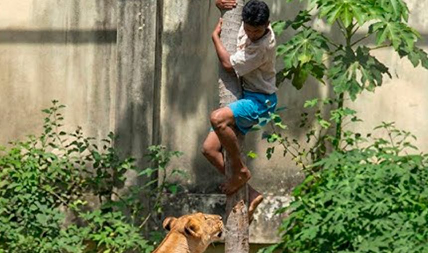 Vídeos mostram o momento em que o homem escala a estrutura lateral da jaula e salta para dentro do espaço, sendo atacado imediatamente. De acordo com a TV Cabo Branco, ele possuía histórico de transtornos mentais.