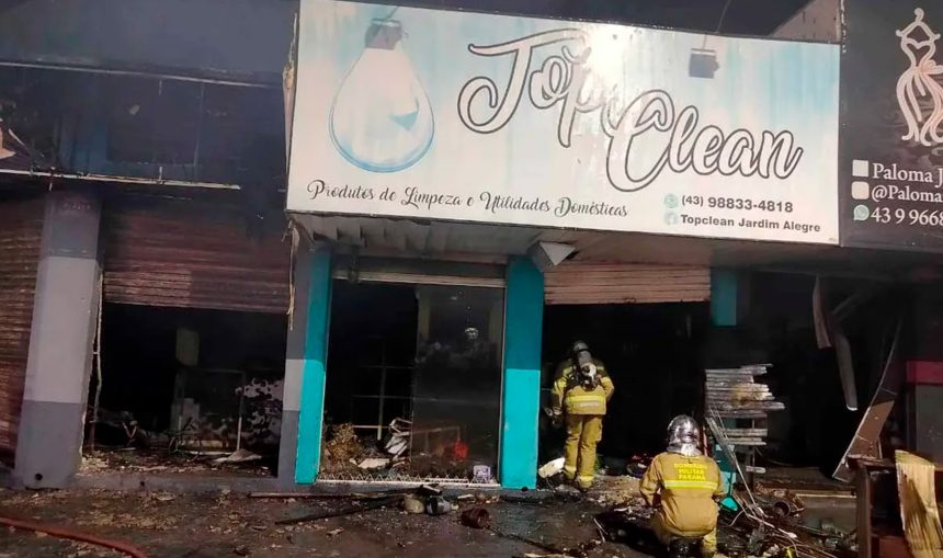 Um incêndio atingiu três estabelecimentos comerciais na Avenida Paraná, em Jardim Alegre, no Vale do Ivaí, durante a madrugada desta sexta-feira (26). O Corpo de Bombeiros foi acionado por volta da 1h09.