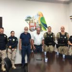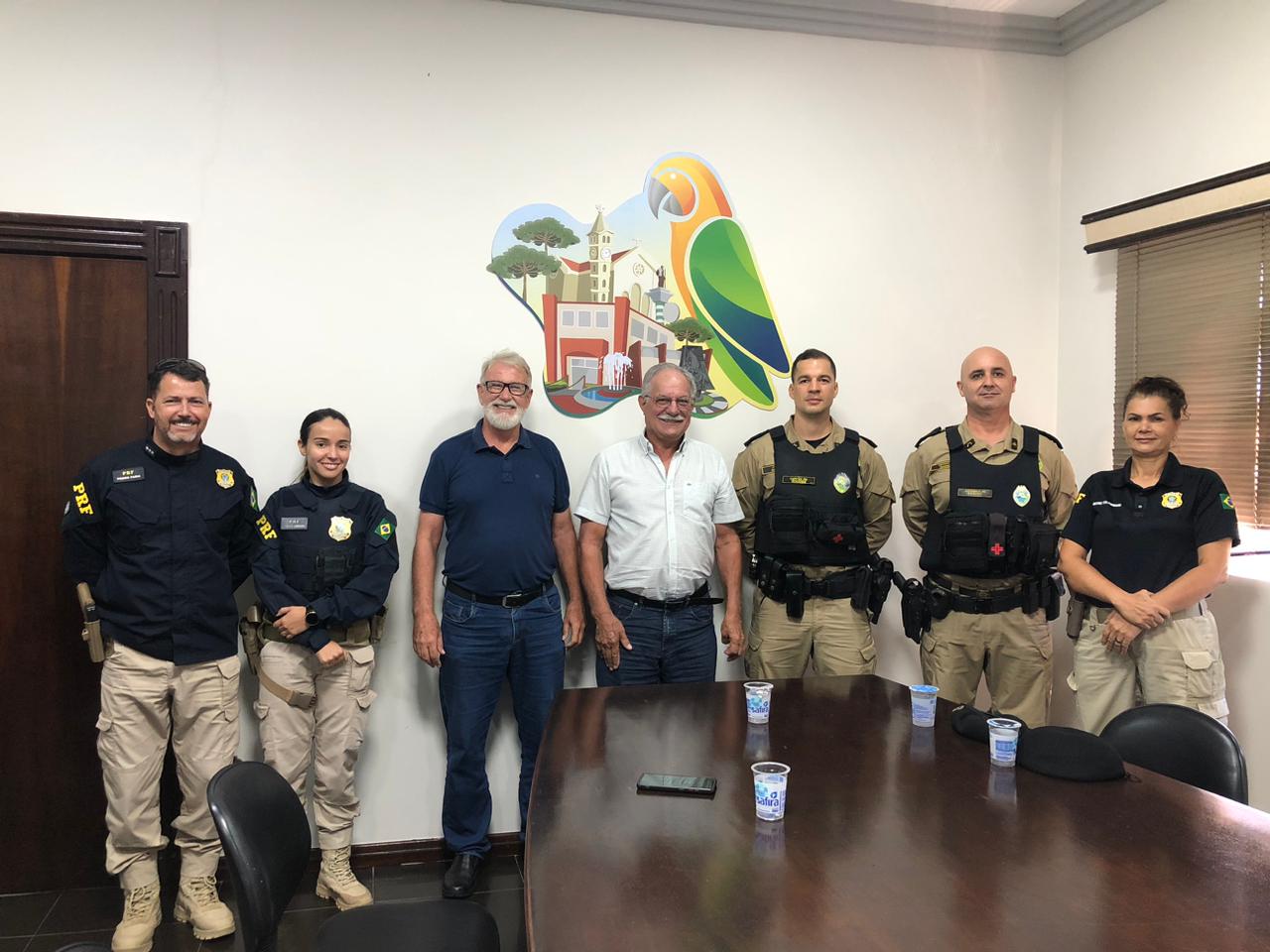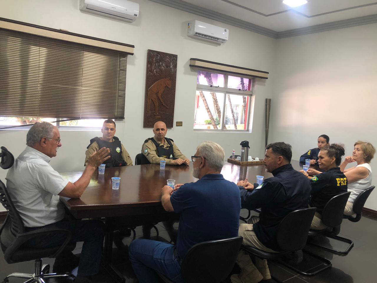 Participaram da reunião Pedro Faria, inspetor-chefe da PRF da região; a inspetora Cybele, chefe substituta; e a inspetora Meire, chefe da Educação Corporativa da PRF.
