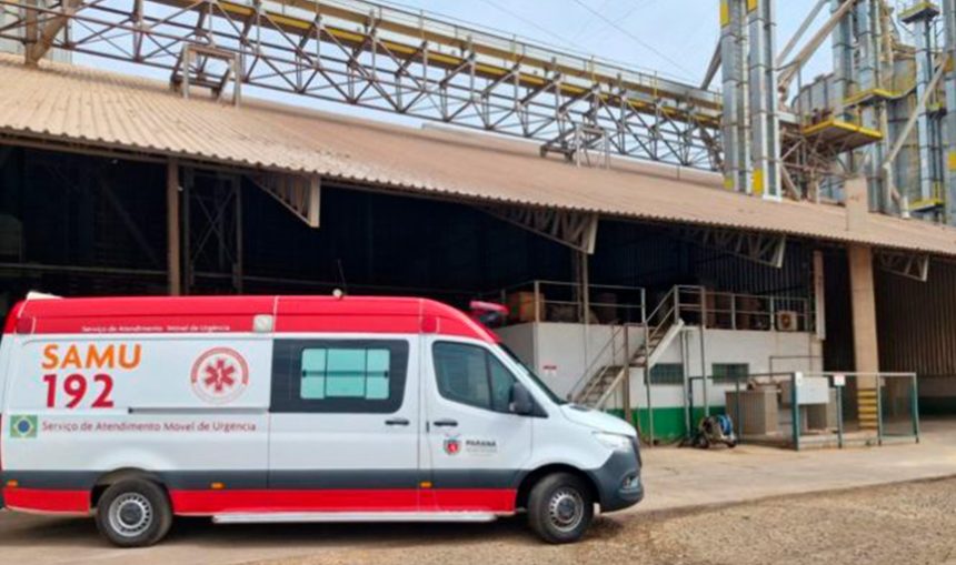 A equipe do SAMU foi acionada na manhã de terça-feira (30) para atender a um acidente de trabalho ocorrido em uma cooperativa, nas proximidades do Distrito São José, em Jandaia do Sul.