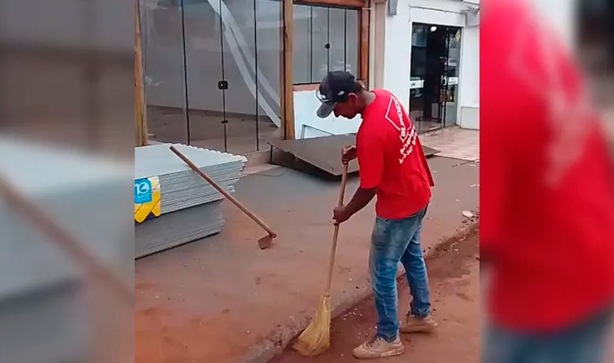 Um vídeo gravado por uma moradora mostra o voluntário removendo entulhos com vassoura e enxada. A mulher se emocionou ao relatar que ele “veio de longe para ajudar” e apoiou seus pais, já idosos, no momento mais crítico.