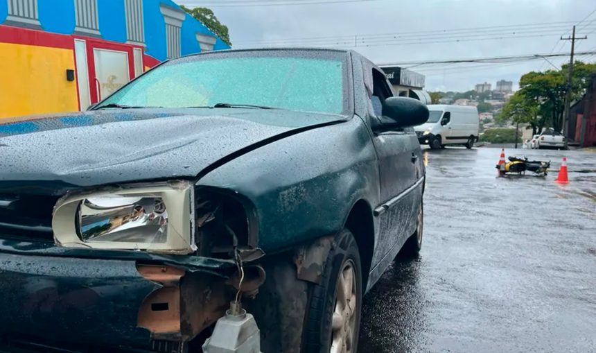 Um acidente envolvendo um VW Gol e uma Honda Biz deixou um motociclista de 39 anos ferido na manhã desta segunda-feira (13), na região da Vila São José, em Apucarana.