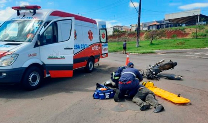 Um acidente envolvendo uma motocicleta e um carro foi registrado por volta das 11h15 do dia 27, na BR-376, em Jandaia do Sul.