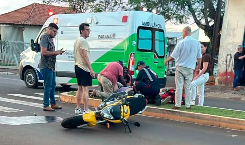 Um motociclista ficou gravemente ferido após colidir com um Fusca que puxava um reboque na Avenida Brasil, no centro de Faxinal, na tarde desta quinta-feira (6). O motorista do Fusca não se feriu.