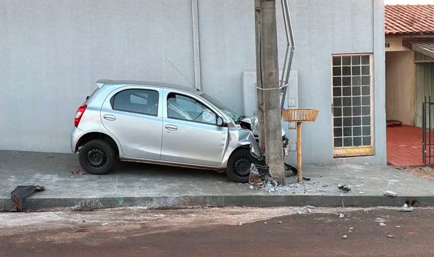 Sem controle do veículo, ele atravessou o cruzamento e acabou colidindo contra um poste na Avenida São João.