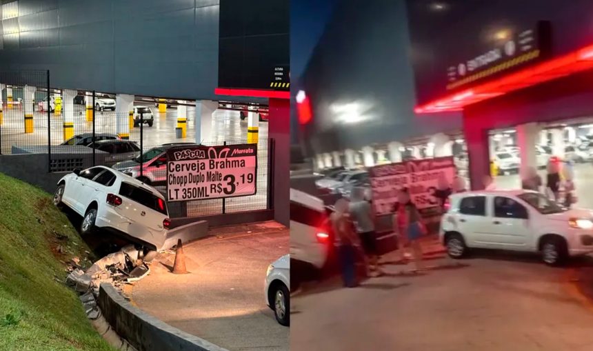 De acordo com testemunhas, o condutor de um Volkswagen Polo teria se confundido com os pedais ao tentar entrar no estacionamento e acabou colidindo na traseira de um Fiat Uno que estava à frente.