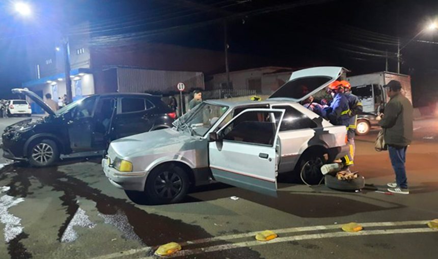 Uma mulher de 51 anos ficou ferida em um acidente entre dois veículos registrado por volta das 21h20 deste domingo (9), no cruzamento das ruas José Maria de Paula e João Batista Mortean, próximo ao atual PAM, em Jandaia.