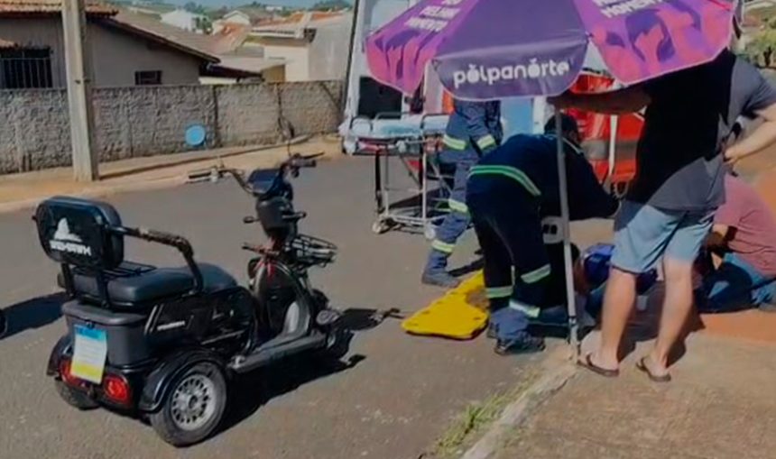 Uma mulher sofreu um acidente com um triciclo elétrico na tarde desta quarta-feira (4), na Rua Pirapó, em Jandaia do Sul.