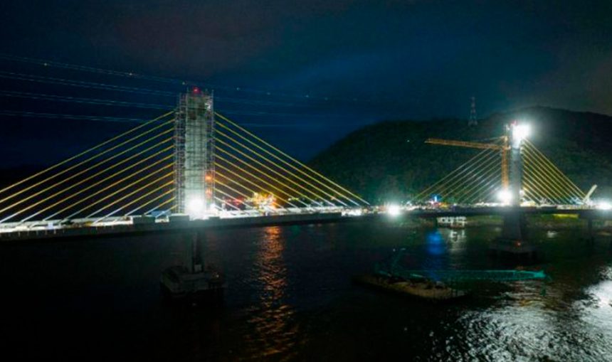 As obras da Ponte de Guaratuba seguem em ritmo acelerado, com trabalhos realizados 24 horas por dia, incluindo o período noturno.