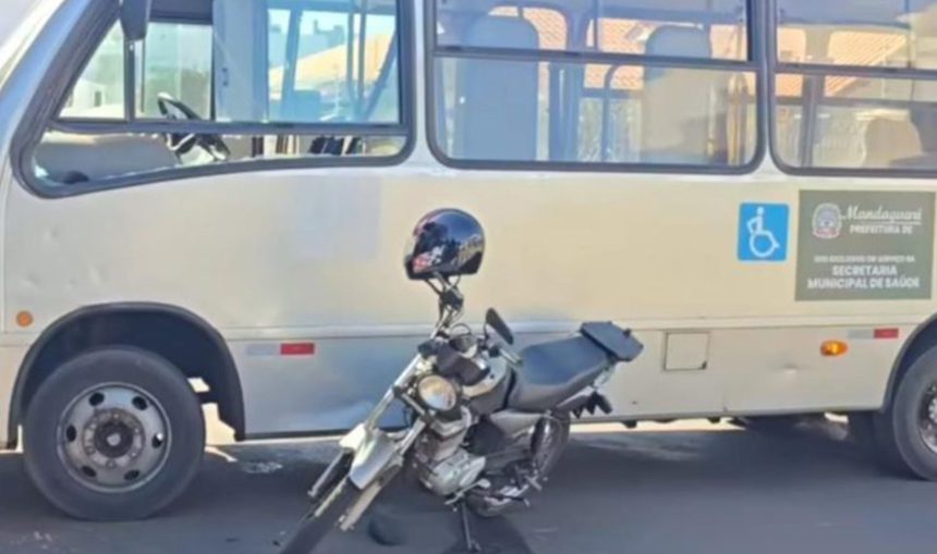 Na manhã desta quinta-feira (14), um ônibus da Prefeitura de Mandaguari colidiu com uma motocicleta na Zona 5 de Maringá, no cruzamento das ruas Antonio Carniel e Santa Joaquina de Vedruna.