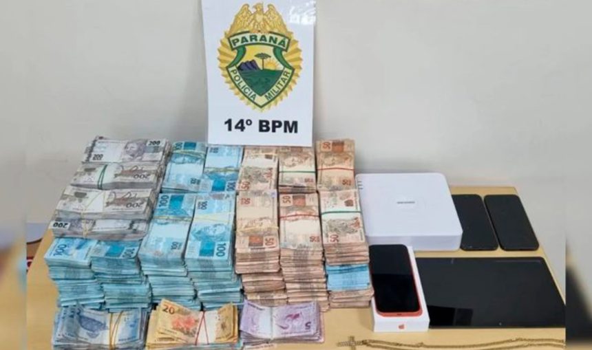 Uma operação realizada em conjunto pela Polícia Militar do Paraná (PMPR) e pela Polícia Federal (PF) resultou na apreensão de R$ 1.278.264,65 em espécie durante o atendimento a uma ocorrência de roubo, na noite de terça-feira (7), em uma residência no bairro Jardim Panorama.
