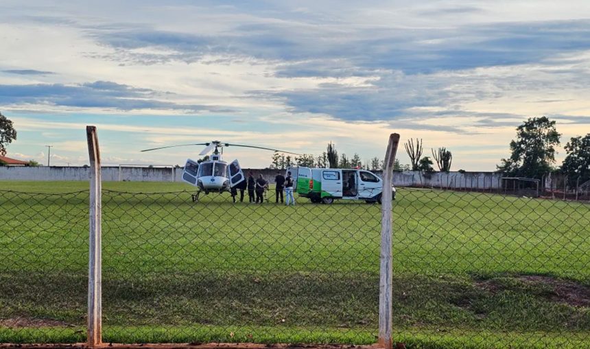 O Serviço de Atendimento Móvel de Urgência (SAMU) solicitou apoio do helicóptero aeromédico, que pousou no estádio municipal da cidade. O paciente foi levado de ambulância até o local e, em seguida, embarcado na aeronave.
