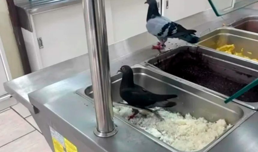 Fotos e vídeos que circulam em grupos de pais mostram o momento em que pombos circulam livremente na área de manipulação e distribuição da merenda. A presença dessas aves em ambientes de preparo de alimentos é considerada um risco sanitário, devido à possibilidade de transmissão de doenças como salmonelose e criptococose.