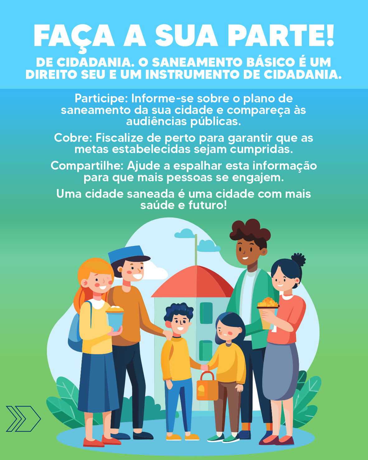 O PMSB só alcança resultados quando a população também participa. Por isso, é fundamental que os moradores: