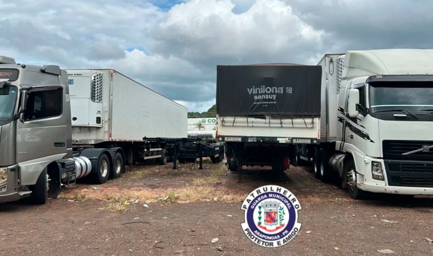 Uma ação conjunta da Polícia Militar e da Guarda Municipal resultou, no dia 2, na apreensão de vários veículos de carga com indícios de roubo e adulteração em Arapongas, no norte do Paraná. A ocorrência teve início após informações apontarem que um semi-reboque roubado em agosto de 2025, em Presidente Prudente, estaria escondido no município.