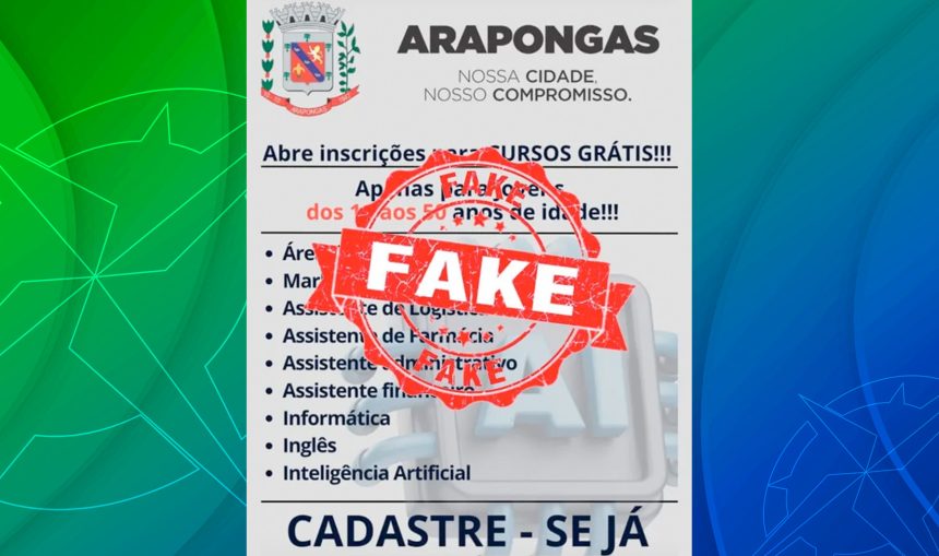 A Prefeitura de Arapongas (PR) emitiu um alerta à população sobre a divulgação de supostos cursos gratuitos em diversas áreas, anunciados por duas empresas que utilizam indevidamente o brasão oficial do município.