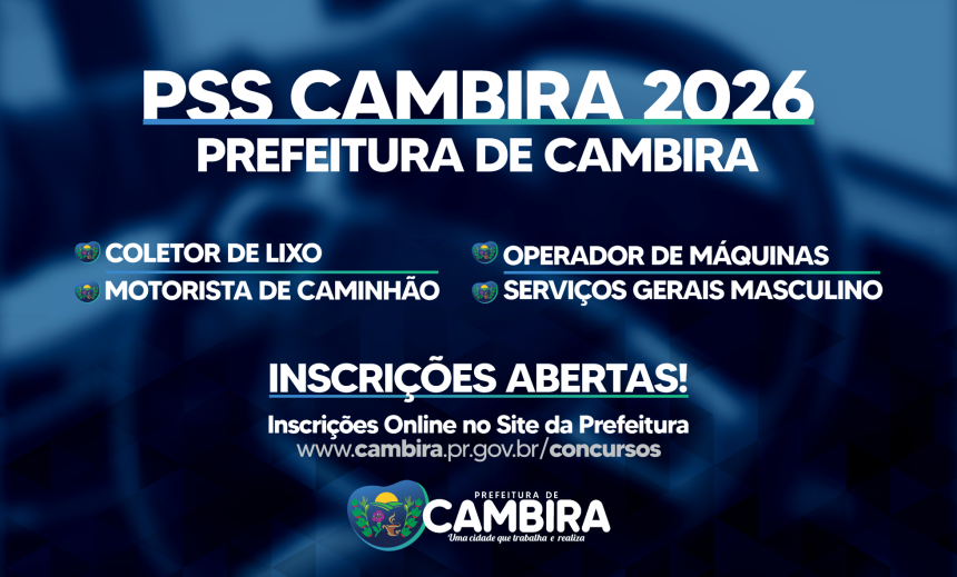 A Prefeitura de Cambira anunciou a abertura do Processo Seletivo Simplificado (PSS) – Edital nº 001/2026, com oportunidades para contratação em diversas funções operacionais do município.