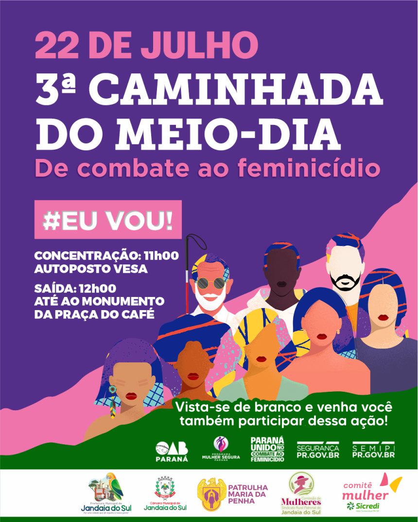 A Prefeitura de Jandaia do Sul, por meio do Departamento de Assistência Social e da Patrulha da Mulher, realiza na terça-feira (22) a “Caminhada do Meio-Dia”, uma ação de mobilização e conscientização da comunidade sobre o combate ao feminicídio e à violência contra a mulher.