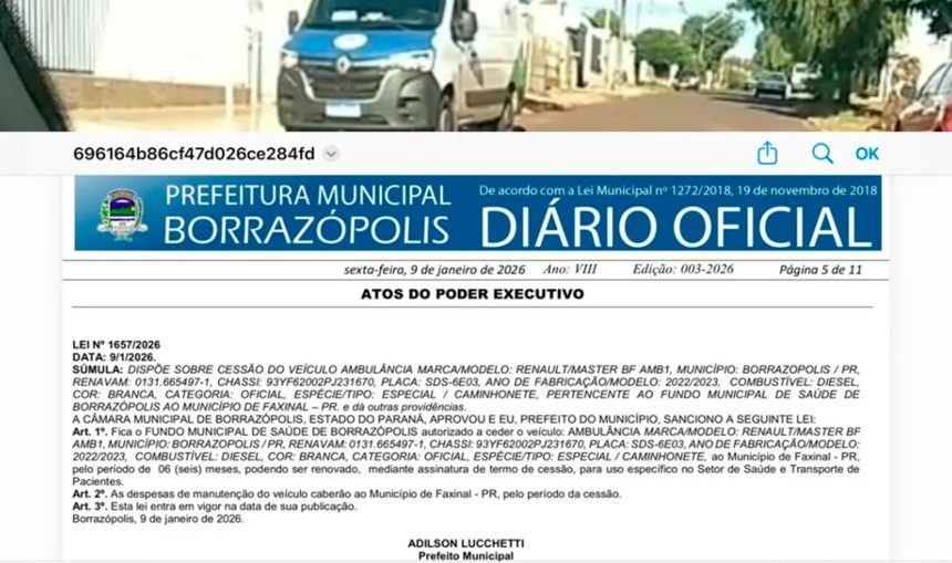 No vídeo, o autor da denúncia levanta suspeitas de uso irregular do veículo e relembra problemas antigos relacionados à falta de ambulância no município. Diante da repercussão, a Prefeitura de Borrazópolis esclareceu o caso.