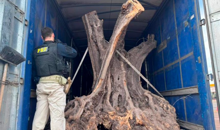 O motorista informou que transportava plantas, mas não soube detalhar a espécie e também não apresentou a documentação fiscal obrigatória. Durante a vistoria, os agentes encontraram as árvores de grande porte, com troncos retorcidos e características típicas de exemplares antigos.