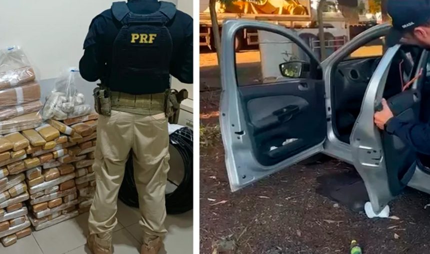 Durante a fiscalização, os policiais encontraram os entorpecentes escondidos sob o carpete do veículo, no interior das portas e no compartimento de bagagens. Ao todo, foram apreendidos 125,2 quilos de maconha e 4,2 quilos de haxixe, totalizando 129,4 quilos de droga.