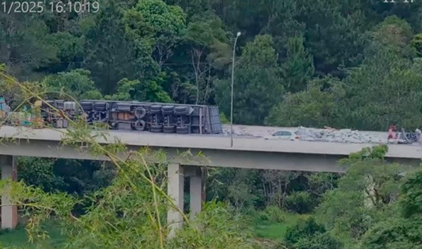 O tombamento ocorreu após uma manobra de mudança de faixa, em trecho íngreme e sinuoso com limite de 60 km/h. O motorista de 28 anos sofreu ferimentos leves.