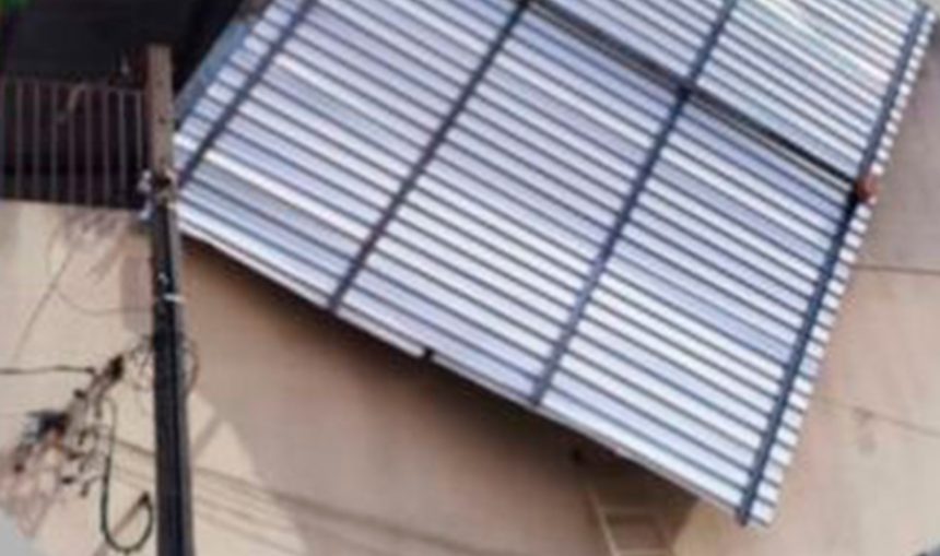 Além das telhas, algumas placas de energia solar também foram danificadas. Segundo informações, uma delas chegou a cair sobre um veículo estacionado nas proximidades.