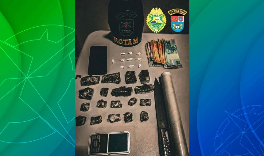 A ação teve início após denúncia anônima. No local, os policiais encontraram duas porções de cocaína e dinheiro trocado com o suspeito. Em buscas pela casa, localizaram ainda 18 porções de maconha, oito de cocaína, uma balança de precisão, faca com resquícios de drogas, rolo de plástico filme e mais R$ 264.