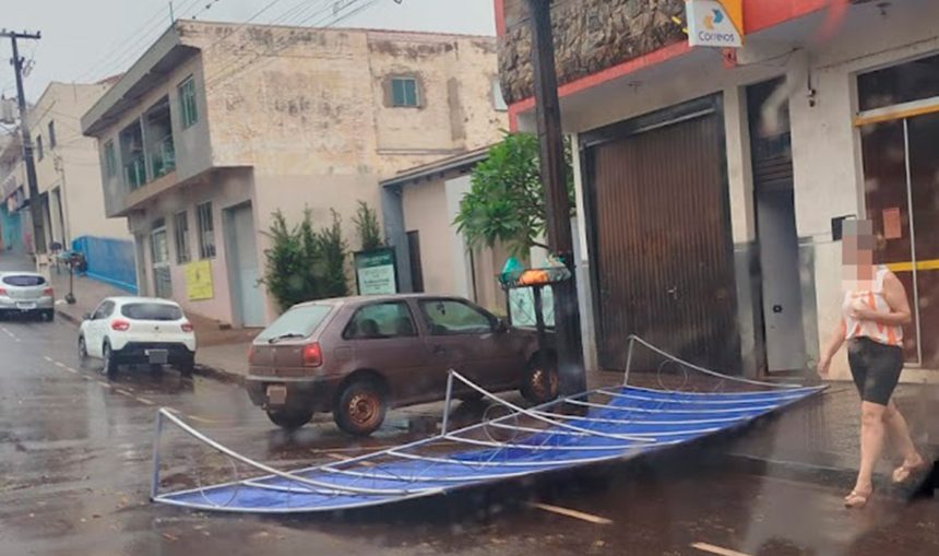 Houve registro de quedas de árvores e galhos em diversos pontos. No centro da cidade, o toldo da Agência dos Correios, próximo à Praça da República, desabou. Em frente ao local, a porta metálica de uma residência em construção também foi arrancada pela ventania.