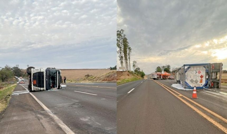 A PR-444 permanece interditada nesta quinta-feira (2) após o tombamento de uma carreta que transportava ácido propiônico, registrado na tarde de quarta-feira (1º), próximo ao Rio Pirapó, entre Arapongas e Apucarana.